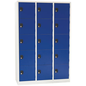 Meervakse garderobekast met vakken Modulo, Type garderobekast: Met vakken, Materiaal: Staal, Aantal vakken/kolom: 5 (speciaal voor helmen), Aantal kastkolommen: 3, Onderstel: Op sokkel, Breedte kolom: 400 mm, Type sluiting: Met sleutel, Hoogte: 1800 mm, Breedte: 1185 mm, Diepte: 500 mm, Plaatstaal dikte: 7/10de, Nuttige hoogte vak: 315 mm, Nuttige breedte vak: 335 mm, Nuttige diepte vak: 475 mm, Coating: Epoxy, Kleur ombouw: Lichtgrijs, Kleur deur: Blauw, RAL: 7035 5010, Configureerbaar: ja, Geleverd gemonteerd: ja, Materiaal: Staalplaat, Special Covid-19: nee, Recyclebare verpakking: Ja - 100%, Gerecyclede verpakkingen: 100 %, Recyclebaar product: Ja - 100%, Gerecycled product: 20 %