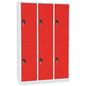 Meervaks garderobekast, Type garderobekast: Met garderobe, Materiaal: Staal, Aantal vakken/kolom: 2 (speciaal voor helmen), Aantal kastkolommen: 3, Onderstel: Op sokkel, Breedte kolom: 400 mm, Aantal deuren: 2, Type sluiting: Met sleutel, Hoogte: 1800 mm, Breedte: 1185 mm, Diepte: 500 mm, Plaatstaal dikte: 7/10de, Nuttige hoogte vak: 820 mm, Nuttige breedte vak: 335 mm, Nuttige diepte vak: 475 mm, Coating: Epoxy, Kleur ombouw: Lichtgrijs, Kleur deur: Rood, RAL: 7035 3000, Geleverd gemonteerd: ja, Recyclebare verpakking: Ja - 100%, Gerecyclede verpakkingen: 100 %, Recyclebaar product: Ja - 100%, Gerecycled product: 20 %