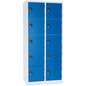Meervakse garderobekast met vakken Modulo, Type garderobekast: Met vakken, Materiaal: Staal, Aantal vakken/kolom: 5 (speciaal voor helmen), Aantal kastkolommen: 2, Onderstel: Op sokkel, Breedte kolom: 400 mm, Type sluiting: Met sleutel, Hoogte: 1800 mm, Breedte: 800 mm, Diepte: 500 mm, Plaatstaal dikte: 7/10de, Nuttige hoogte vak: 315 mm, Nuttige breedte vak: 335 mm, Nuttige diepte vak: 475 mm, Coating: Epoxy, Kleur ombouw: Lichtgrijs, Kleur deur: Blauw, RAL: 7035 5010, Configureerbaar: ja, Geleverd gemonteerd: ja, Materiaal: Staalplaat, Special Covid-19: nee, Recyclebare verpakking: Ja - 100%, Gerecyclede verpakkingen: 100 %, Recyclebaar product: Ja - 100%, Gerecycled product: 20 %