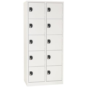 Meervakse garderobekast met vakken Modulo, Type garderobekast: Met vakken, Materiaal: Staal, Aantal vakken/kolom: 5 (speciaal voor helmen), Aantal kastkolommen: 2, Onderstel: Op sokkel, Breedte kolom: 400 mm, Type sluiting: Met sleutel, Hoogte: 1800 mm, Breedte: 800 mm, Diepte: 500 mm, Plaatstaal dikte: 7/10de, Nuttige hoogte vak: 315 mm, Nuttige breedte vak: 335 mm, Nuttige diepte vak: 475 mm, Coating: Epoxy, Kleur ombouw: Lichtgrijs, Kleur deur: Lichtgrijs, RAL: 7035, Configureerbaar: ja, Geleverd gemonteerd: ja, Materiaal: Staalplaat, Special Covid-19: nee, Recyclebare verpakking: Ja - 100%, Gerecyclede verpakkingen: 100 %, Recyclebaar product: Ja - 100%, Gerecycled product: 20 %