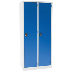 Garderobekast Modulo, Type garderobekast: Met vakken en garderobe, Materiaal: Staal, Aantal kastkolommen: 2, Onderstel: Op sokkel, Type sluiting: Met sleutel, Hoogte: 1800 mm, Breedte: 800 mm, Breedte kolom: 400 mm, Garderobe breedte: 400 mm, Diepte: 500 mm, Plaatstaal dikte: 7/10de, Nuttige hoogte vak: 1738 mm, Nuttige breedte vak: 397 mm, Nuttige diepte vak: 469 mm, Coating: Epoxy, Kleur ombouw: Lichtgrijs, Kleur deur: Blauw, RAL: 7035 5010, Geleverd gemonteerd: ja, Garderobekast gebruiksomgeving: Personeelskamer, Aantal vakken/kolom: 1, Recyclebare verpakking: Ja - 100%, Gerecyclede verpakkingen: 100 %, Recyclebaar product: Ja - 100%, Gerecycled product: 20 %, Aantal vakken: 2, Type: Uit één stuk