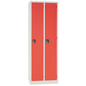 Garderobekast Modulo, Type garderobekast: Met vakken en garderobe, Materiaal: Staal, Aantal kastkolommen: 2, Onderstel: Op sokkel, Type sluiting: Met sleutel, Hoogte: 1800 mm, Breedte: 600 mm, Breedte kolom: 300 mm, Garderobe breedte: 300 mm, Diepte: 500 mm, Plaatstaal dikte: 7/10de, Nuttige hoogte vak: 1738 mm, Nuttige breedte vak: 285 mm, Nuttige diepte vak: 469 mm, Coating: Epoxy, Kleur ombouw: Lichtgrijs, Kleur deur: Rood, RAL: 7035 3000, Geleverd gemonteerd: ja, Garderobekast gebruiksomgeving: Personeelskamer, Aantal vakken/kolom: 1, Recyclebare verpakking: Ja - 100%, Gerecyclede verpakkingen: 100 %, Recyclebaar product: Ja - 100%, Gerecycled product: 20 %, Aantal vakken: 2, Type: Uit één stuk
