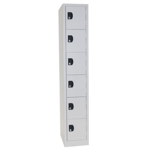 Meervakse garderobekast met vakken Modulo, Type garderobekast: Met vakken, Materiaal: Staal, Aantal vakken/kolom: 6, Aantal kastkolommen: 1, Onderstel: Op sokkel, Breedte kolom: 300 mm, Type sluiting: Met sleutel, Hoogte: 1800 mm, Breedte: 315 mm, Diepte: 500 mm, Plaatstaal dikte: 7/10de, Nuttige hoogte vak: 260 mm, Nuttige breedte vak: 235 mm, Nuttige diepte vak: 475 mm, Coating: Epoxy, Kleur ombouw: Lichtgrijs, Kleur deur: Lichtgrijs, RAL: 7035, Configureerbaar: ja, Geleverd gemonteerd: ja, Materiaal: Staalplaat, Special Covid-19: nee, Recyclebare verpakking: Ja - 100%, Gerecyclede verpakkingen: 100 %, Recyclebaar product: Ja - 100%, Gerecycled product: 20 %