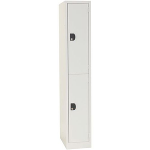 Meervaks garderobekast met hanggedeelte Modulo, Type garderobekast: Met garderobe, Materiaal: Staal, Aantal vakken/kolom: 2, Aantal kastkolommen: 1, Onderstel: Op sokkel, Breedte kolom: 300 mm, Type sluiting: Met sleutel, Hoogte: 1800 mm, Breedte: 315 mm, Diepte: 500 mm, Plaatstaal dikte: 7/10de, Nuttige hoogte vak: 820 mm, Nuttige breedte vak: 235 mm, Nuttige diepte vak: 475 mm, Coating: Epoxy, Kleur ombouw: Grijs, Kleur deur: Lichtgrijs, RAL: 7035, Configureerbaar: ja, Geleverd gemonteerd: ja, Special Covid-19: nee, Recyclebare verpakking: Ja - 100%, Gerecyclede verpakkingen: 100 %, Recyclebaar product: Ja - 100%, Gerecycled product: 20 %