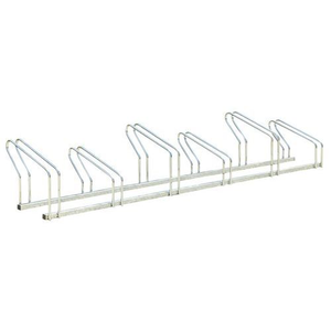 Fietsenrek- naast elkaar, Totale lengte: 2370 mm, Aantal plaatsen: 6, Model: Naast elkaar, Totale diepte: 410 mm, Totale hoogte: 480 mm, Materiaal: Staal, Coating: Verzinkt, Kleur: Grijs, Paal Ø: 16 mm, Recyclebare verpakking: Ja - 100%, Recyclebaar product: Ja - 100%