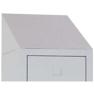 Stofkap voor garderobekast 1 tot 4 kolommen, Type accessoire voor garderobekast: Kap, Voor model: Garderobekast Manutan 1 kolom breedte 400 mm, Aantal kastkolommen: 1, Materiaal: Staal, Hoogte: 200 mm, Breedte: 415 mm, Diepte: 500 mm, Coating: Epoxy, Kleur: Beige, RAL: 1015, Recyclebare verpakking: Ja - 100%, Gerecyclede verpakkingen: 100 %, Recyclebaar product: Ja - 100%, Gerecycled product: 20 %, Plaatstaal dikte: 7/10de, Type: Schuine kap