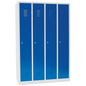 Garderobekast schone industrie, Type garderobekast: Met vakken en garderobe, Materiaal: Staal, Aantal kastkolommen: 4, Onderstel: Op sokkel, Breedte kolom: 300 mm, Type sluiting: Met sleutel, Hoogte: 1800 mm, Breedte: 1170 mm, Diepte: 500 mm, Plaatstaal dikte: 7/10de, Coating: Epoxy, Kleur ombouw: Lichtgrijs, Kleur deur: Blauw, RAL: 7035, Deur RAL: 5005, Geleverd gemonteerd: ja, Garderobekast gebruiksomgeving: Lichte industrie, Aantal vakken/kolom: 1, Recyclebare verpakking: Ja - 100%, Gerecyclede verpakkingen: 100 %, Recyclebaar product: Ja - 100%, Gerecycled product: 20 %, Aantal vakken: 2