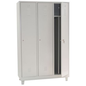 Garderobekast zware industrie, Type garderobekast: Met vakken en garderobe, Materiaal: Staal, Aantal kastkolommen: 3, Onderstel: Op poten, Aantal deuren: 3, Type sluiting: Met sleutel, Hoogte: 1900 mm, Breedte: 1185 mm, Breedte kolom: 400 mm, Diepte: 500 mm, Plaatstaal dikte: 7/10de, Coating: Epoxy, Kleur ombouw: Lichtgrijs, Kleur deur: Lichtgrijs, RAL: 7035, Geleverd gemonteerd: nee, Garderobekast gebruiksomgeving: Zware industrie, Aantal vakken/kolom: 1, Recyclebare verpakking: Ja - 100%, Gerecyclede verpakkingen: 100 %, Recyclebaar product: Ja - 100%, Gerecycled product: 20 %, Aantal vakken: 3