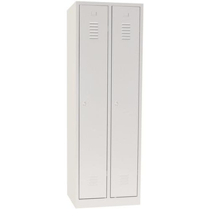 Garderobekast schone industrie, Type garderobekast: Met vakken en garderobe, Materiaal: Staal, Aantal kastkolommen: 2, Onderstel: Op sokkel, Breedte kolom: 300 mm, Type sluiting: Met hangslot, Hoogte: 1800 mm, Breedte: 600 mm, Diepte: 500 mm, Plaatstaal dikte: 7/10de, Coating: Epoxy, Kleur ombouw: Lichtgrijs, Kleur deur: Lichtgrijs, RAL: 7035, Deur RAL: 7035, Geleverd gemonteerd: ja, Garderobekast gebruiksomgeving: Lichte industrie, Aantal vakken/kolom: 1, Gerecyclede verpakkingen: 100 %, Recyclebaar product: Ja - 100%, Gerecycled product: 20 %, Aantal vakken: 2