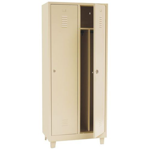 De goedkope oplossing om uw collectieve ruimtes in te richten. Garderobekast op poten geschikt voor zware industrie, met verstevigde deuren. Optimale opening van 180°, esthetisch met onzichtbare scharnieren. Hangkast met scheiding voor schone en vuile kleding. Perforaties voor wandbevestiging, met etikettenhouder. Hygiënisch dankzij ventilatie boven-/onderaan de deuren. Let op: de modellen met houder voor hangsloten worden geleverd zonder hangslot, vergeet dit niet te bestellen (hangslot B 40 mm, Ø beugel 6 mm). Veiligheidstips: zorg ervoor dat het meubel op een vlak oppervlak wordt geplaatst, het is ideaal om het aan de muur of op een scheidingswand te bevestigen met behulp van een speciale bevestiging.