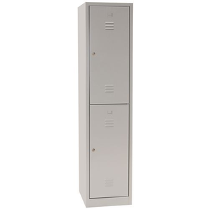 Garderobekast meervaks, Type garderobekast: Met garderobe, Materiaal: Staal, Aantal vakken/kolom: 2 (speciaal voor helmen), Aantal kastkolommen: 1, Onderstel: Op sokkel, Breedte kolom: 400 mm, Aantal kubusvakken: 2, Hoogte: 1800 mm, Breedte: 415 mm, Diepte: 500 mm, Plaatstaal dikte: 7/10de, Nuttige hoogte vak: 820 mm, Nuttige breedte vak: 320 mm, Nuttige diepte vak: 475 mm, Coating: Epoxy, Kleur ombouw: Lichtgrijs, Kleur deur: Lichtgrijs, RAL: 7035, Geleverd gemonteerd: ja, Recyclebare verpakking: Ja - 100%, Gerecyclede verpakkingen: 100 %, Recyclebaar product: Ja - 100%, Gerecycled product: 20 %