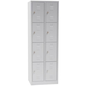 Garderobekast meervaks, Type garderobekast: Met vakken, Materiaal: Staal, Aantal vakken/kolom: 4, Aantal kastkolommen: 2, Onderstel: Op sokkel, Breedte kolom: 300 mm, Aantal kubusvakken: 8, Hoogte: 1800 mm, Breedte: 630 mm, Diepte: 500 mm, Plaatstaal dikte: 7/10de, Nuttige hoogte vak: 400 mm, Nuttige breedte vak: 220 mm, Nuttige diepte vak: 475 mm, Coating: Epoxy, Kleur ombouw: Lichtgrijs, Kleur deur: Lichtgrijs, RAL: 7035, Geleverd gemonteerd: ja, Recyclebare verpakking: Ja - 100%, Gerecyclede verpakkingen: 100 %, Recyclebaar product: Ja - 100%, Gerecycled product: 20 %