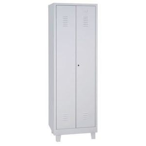 Onderhoudskast / materiaalkast uit één stuk, Type garderobekast: Met vakken en garderobe, Materiaal: Staal, Aantal kastkolommen: 1, Onderstel: Op poten, Aantal vakken: 5, Type sluiting: Met sleutel, Breedte kolom: 600 mm, Type: Uit één stuk, Aantal deuren: 2, Hoogte: 1900 mm, Breedte: 600 mm, Diepte: 500 mm, Coating: Epoxy, Kleur ombouw: Lichtgrijs, Kleur deur: Lichtgrijs, RAL: 7035, Geleverd gemonteerd: ja, Aantal legborden: 4, Recyclebare verpakking: Ja - 100%, Gerecyclede verpakkingen: 100 %, Recyclebaar product: Ja - 100%, Gerecycled product: 20 %, Plaatstaal dikte: 7/10de, Breedte vak: 300 mm, Geschikt voor: Materiaal