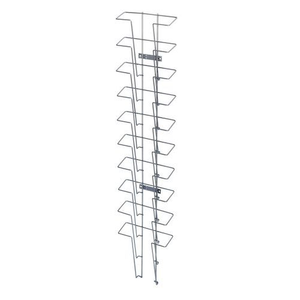 Wandfolderhouder A4, Aantal vakken: 10, Kleur: Grijs, Totale breedte: 23 cm, Totale hoogte: 118 cm, Totale diepte: 11 cm, Materiaal: Aluminium, Voor formaat: A4