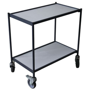 Werktafel met houten plateaus, Zwenkwiel Ø: 125 mm, Max. belasting: 200 kg, Totale hoogte: 810 mm, Totale breedte: 460 mm, Totale lengte: 790 mm, Wiel loopvlak: Rubber, Aantal plateaus: 2, RAL: 7015, Frame kleur: Antraciet, Legbord kleur: Grijs, Nuttige lengte plateau: 790 mm, Nuttige breedte plateau: 460 mm, Hoogte tussen 2 plateaus: 545 mm, Dikte tafelblad: 12 mm, Legbord hoogte: 810 mm, Plateau materiaal: MDF, Gewicht: 14 kg