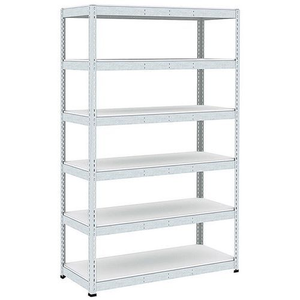 Zware stelling Manutan Rapid 1, Legbord materiaal: Gemelamineerd, Hoogte: 2440 mm, Aantal niveaus: 6, Aantal legborden: 6, Type legbord: Massief, Breedte: 1525 mm, Diepte: 610 mm, Coating: Verzinkt, Type element: Zelfstandig, Max. belasting per niveau: 600 kg, Kleur staander: Zilver/verzinkt, Kleur ligger: Zilver/verzinkt, RAL: 7001, Stelling voor: Losse onderdelen, Configureerbaar: ja, Stelling lijn: Manutan Rapid 1, Max. belasting: 3600 kg, Montage: Zelfbouw, Materiaal: Staal, Ligger materiaal: Staal, Staaldikte staander: 2 mm, Gerecyclede verpakkingen: 47 %, Gerecycled product: 47 %, Eco-verantwoordelijke aanpak: ja, Frame materiaal: Staal, Ligger breedte: 1525 mm, Dikte legbord: 16 mm, Type stelling: Zwaarlast stelling, Geen gereedschap nodig: ja