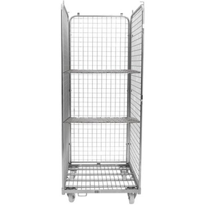 Rolcontainer staal, 3 zijden en 2 legborden - Draagvermogen 400 kg - Manutan Expert