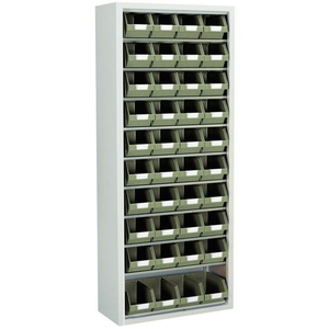 Kast met stapelbakken Manugreen, Totale hoogte: 1690 mm, Totale breedte: 700 mm, Totale diepte: 300 mm, Bak kleur: Groen, Aantal bakken/kleuren/vermogen: 40/3,5 l, Max. belasting per legbord: 50 kg, Kleur ombouw: Grijs, RAL: 7035, Afmeting: Klein, Totale inhoud: 3.5 L, Materiaal: Staal, Lean Management: ja, Aantal legborden: 9, Gerecyclede verpakkingen: 89 %, Gerecycled product: 89 %, Eco-verantwoordelijke aanpak: ja, Model: Gemiddeld, Gebruik: Sorteren