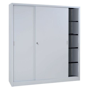 Te monteren schuifdeurkast, Totale hoogte: 200 cm, Totale breedte: 180 cm, Deur openingstype: Schuifdeur, Type sluiting: Met sleutel, Kleur ombouw: Lichtgrijs, Totale diepte: 45 cm, Type product: Hoge kast, Kleur deur: Lichtgrijs, Max. belasting per legbord: 60 kg, Materialen: Staal, Aantal legborden: 8, RAL: 7035, Geleverd gemonteerd: nee, Montage: Zelfbouw, Recyclebare verpakking: Ja - 100%, Gerecyclede verpakkingen: 100 %, Recyclebaar product: Ja - 100%, Gerecycled product: 20 %, Aantal deuren: 2, Front kleur: Lichtgrijs