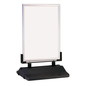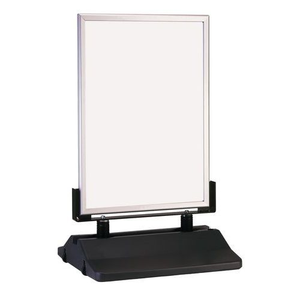 Bestand tegen gure weersomstandigheden De spatwaterdichte ruit en ontspiegelende folie zorgen voor optimale bescherming. Vul de kunststof voet met water of zand voor extra stabiliteit. De wieltjes maken het reclamebord eenvoudig verplaatsbaar. Dubbelzijdig reclamebord geschikt voor zowel binnen als buitengebruik.