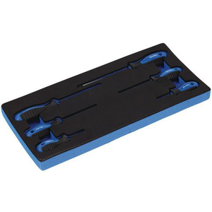 Ideaal voor de uitrusting van een werkplaatswagen. Module van foam 1/3 bestaande uit 6 schroevendraaiers.Ergonomische handgreep van twee materialen voor comfort en een goede ligging in de hand.Het uiteinde van de handgreep is afgerond, voor aanpassing