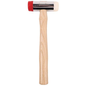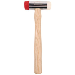 Moker met verwisselbare hamerdoppen. Stalen kop met verchroomde afwerking. Heft van essenhout. De slagoppervlakken laten geen markering achter op de doppen. Geleverd met twee hamerdoppen van rubber en hardhout.