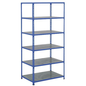 Middelzware stelling Manutan Rapid 2, Max. belasting per legbord: 149 kg, Legbord materiaal: Staal, Hoogte: 1830 mm, Aantal legborden: 6, Type legbord: Massief, Breedte: 915 mm, Diepte: 455 mm, Coating: Epoxy, Type element: Zelfstandig, Model: Rapid 2, Type juk: Open, Aantal niveaus: 6, Kleur staander: Blauw, Kleur ligger: Blauw, Legbord kleur: Zilver/verzinkt, RAL: 5019, Stelling voor: Losse onderdelen, Configureerbaar: ja, Stelling lijn: Manutan Rapid 2, Afstand verstelbaarheid: 38.1 mm, Montage: Zelfbouw, Frame materiaal: Staal, Montagesysteem: Bevestigingssysteem, Aantal staanders: 4, Type stelling: Halfzware stelling, Geen gereedschap nodig: ja