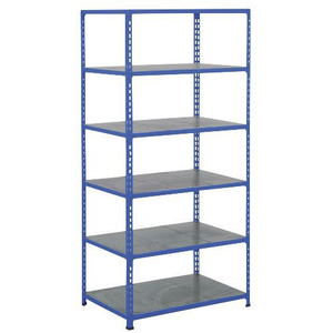 Middelzware stelling Manutan Rapid 2, Max. belasting per legbord: 149 kg, Legbord materiaal: Staal, Hoogte: 1830 mm, Aantal legborden: 6, Type legbord: Massief, Breedte: 915 mm, Diepte: 610 mm, Coating: Epoxy, Type element: Zelfstandig, Model: Rapid 2, Type juk: Open, Aantal niveaus: 6, Kleur staander: Blauw, Kleur ligger: Blauw, Legbord kleur: Zilver/verzinkt, RAL: 5019, Stelling voor: Losse onderdelen, Configureerbaar: ja, Stelling lijn: Manutan Rapid 2, Afstand verstelbaarheid: 38.1 mm, Montage: Zelfbouw, Frame materiaal: Staal, Montagesysteem: Bevestigingssysteem, Aantal staanders: 4, Type stelling: Halfzware stelling, Geen gereedschap nodig: ja