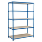 Middelzware stelling Manutan Rapid 2, Hoogte: 1830 mm, Aantal niveaus: 5, Type legbord: Massief, Breedte: 915 mm, Diepte: 380 mm, Coating: Epoxy, Type element: Zelfstandig, Type juk: Open, Legbord materiaal: Spaanplaat, Aantal legborden: 5, Max. belasting per legbord: 340 kg, Kleur staander: Blauw, Kleur ligger: Blauw, RAL: 5019, Stelling voor: Kunststof en kartonnen dozen, Configureerbaar: ja, Stelling lijn: Manutan Rapid 2, Afstand verstelbaarheid: 38.1 mm, Montage: Zelfbouw, Gerecycled product: 7 %, Frame materiaal: Staal, Montagesysteem: Bevestigingssysteem, Aantal staanders: 4, Dikte legbord: 16 mm, Type stelling: Halfzware stelling, Geen gereedschap nodig: ja