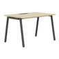 Recht bureau met boogvormige A-poten.Melamineblad van 25 mm dikte met randen van ABS van 2 mm.10 mm tussen de poten en het bureau.2 Metalen dwarsliggers voor bevestiging (40 x 20 mm) Metalen buisvormi