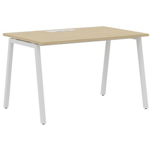 Recht bureau 120 cm A-poten Misao, Type onderstel: V-poot, Totale hoogte: 74 cm, Totale breedte: 120 cm, Type bureau: Recht bureau, Type bureaublok: Bureau, Totale diepte: 80 cm, Tafelblad materiaal: Gemelamineerd, Onderstel kleur: Wit, Tafelblad kleur: Eiken, Productassortiment: Manutan Misao , Selectie telewerken: ja, Gerecyclede verpakkingen: 90 %, Recyclebaar product: Ja - 100%, Gerecycled product: 47 %, Onderstel dikte: 40 mm, Eco-verantwoordelijke aanpak: ja, Dikte tafelblad: 25 mm