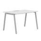 Recht bureau met boogvormige A-poten.Melamineblad van 25 mm dikte met randen van ABS van 2 mm.10 mm tussen de poten en het bureau.2 Metalen dwarsliggers voor bevestiging (40 x 20 mm) Metalen buisvormi