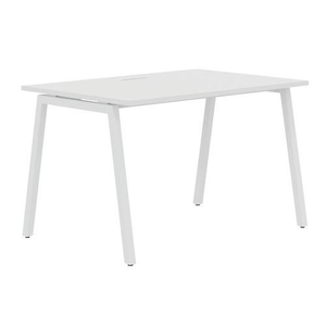Recht bureau met boogvormige A-poten.Melamineblad van 25 mm dikte met randen van ABS van 2 mm.10 mm tussen de poten en het bureau.2 Metalen dwarsliggers voor bevestiging (40 x 20 mm) Metalen buisvormi