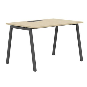 Recht bureau 140 cm A-poten Misao, Type onderstel: V-poot, Hoogte: 74 cm, Totale breedte: 140 cm, Totale diepte: 80 cm, Tafelblad materiaal: Gemelamineerd, Onderstel kleur: Antraciet, Tafelblad kleur: Eiken, Meubellijn: Manutan Misao , Selectie telewerken: ja, Gerecyclede verpakkingen: 90 %, Recyclebaar product: Ja - 100%, Gerecycled product: 45 %, Onderstel dikte: 40 mm, Eco-verantwoordelijke aanpak: ja, Dikte tafelblad: 25 mm