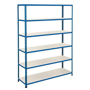 Middelzware stelling Manutan Rapid 2, Hoogte: 1980 mm, Aantal niveaus: 6, Type legbord: Massief, Breedte: 1220 mm, Diepte: 305 mm, Coating: Epoxy, Type element: Zelfstandig, Model: Rapid 2, Type juk: Open, Legbord materiaal: Gemelamineerd, Aantal legborden: 6, Max. belasting per legbord: 340 kg, Kleur staander: Blauw, Kleur ligger: Blauw, RAL: 5019, Stelling voor: Kunststof en kartonnen dozen, Configureerbaar: ja, Stelling lijn: Manutan Rapid 2, Afstand verstelbaarheid: 38.1 mm, Montage: Zelfbouw, Gerecycled product: 4 %, Frame materiaal: Staal, Montagesysteem: Bevestigingssysteem, Aantal staanders: 4, Dikte legbord: 16 mm, Type stelling: Halfzware stelling, Geen gereedschap nodig: ja