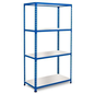 Middelzware stelling Manutan Rapid 2, Hoogte: 1830 mm, Aantal niveaus: 4, Type legbord: Massief, Breedte: 915 mm, Diepte: 455 mm, Coating: Epoxy, Type element: Zelfstandig, Model: Rapid 2, Type juk: Open, Legbord materiaal: Gemelamineerd, Aantal legborden: 4, Max. belasting per legbord: 340 kg, Kleur staander: Blauw, Kleur ligger: Blauw, RAL: 5019, Stelling voor: Kunststof en kartonnen dozen, Configureerbaar: ja, Stelling lijn: Manutan Rapid 2, Afstand verstelbaarheid: 38.1 mm, Montage: Zelfbouw, Gerecycled product: 7 %, Frame materiaal: Staal, Montagesysteem: Bevestigingssysteem, Aantal staanders: 4, Dikte legbord: 16 mm, Type stelling: Halfzware stelling, Geen gereedschap nodig: ja