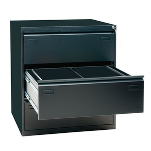 Archiefkast met laden met dubbele breedte van lade, Aantal laden: 3, Totale breedte: 87 cm, Totale diepte: 62 cm, Totale hoogte: 101.2 cm, Materiaal: Staal, Kleur: Zwart, Aantal dossierladen: 3, Type: 3 dubbele laden, Geleverd gemonteerd: ja, Recyclebare verpakking: Ja - 100%, Gerecyclede verpakkingen: 100 %, Recyclebaar product: Ja - 100%, Gerecycled product: 20 %