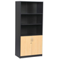 Boekenkast met draaideuren Quatuor, Totale hoogte: 180 cm, Totale breedte: 80 cm, Selectie telewerken: nee, Aantal kubusvakken: 3, Kleur: Antraciet, Totale diepte: 47 cm, Kleur deur: Beuken, Aantal legborden: 4, Type: Boekenkast voor kantoor, Geleverd gemonteerd: nee, Materiaal: Spaanplaat