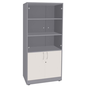 Boekenkast met draaideuren + glazen deuren Quatuor, Totale hoogte: 180 cm, Totale breedte: 80 cm, Selectie telewerken: nee, Aantal kubusvakken: 3, Kleur: Grijs, Totale diepte: 47 cm, Kleur deur: Wit, Aantal legborden: 4, Type: Boekenkast voor kantoor, Geleverd gemonteerd: nee, Materiaal: Spaanplaat