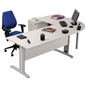 Bureauset Quatuor bestaande uit een recht bureau, een hoek en een ladeblok voor een groter werkoppervlak.Blad van spaanplaat, dikte 25 mm.Bureau voorzien van een frontpaneel en een afsluiter kabeldoor