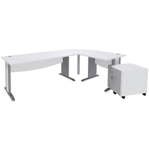 Recht bureau Quatuor L-poot met hoek en ladeblok, Type onderstel: L-poot, Totale hoogte: 72 cm, Totale breedte: 160 cm, Type bureau: Recht bureau, Type bureaublok: Bureau, Elektrisch systeem: nee, Totale diepte: 80 cm, Tafelblad materiaal: Hardboard, Onderstel kleur: Grijs, Tafelblad kleur: Wit, Aantal laden: 2, Geleverd gemonteerd: nee, Selectie telewerken: nee, Recyclebare verpakking: Ja - 100%, Gerecyclede verpakkingen: 50 %, Gerecycled product: 50 %, Material des Untergestells: Spaanplaat, Eco-verantwoordelijke aanpak: ja, Model: Mobiel ladeblok met 2 laden, PEFC licentie: 10-31-4128, Coating: Melamine