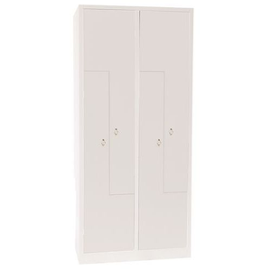 Garderobekast metaal, Type garderobekast: L-vormige deur, Materiaal: Staal, Aantal vakken/kolom: 2, Aantal kastkolommen: 2, Onderstel: Op sokkel, Breedte kolom: 400 mm, Aantal kubusvakken: 4, Aantal deuren: 4, Type sluiting: Met hangslot, Hoogte: 1800 mm, Breedte: 800 mm, Diepte: 500 mm, Plaatstaal dikte: 7/10de, Nuttige breedte vak: 200 mm, Nuttige diepte vak: 475 mm, Coating: Epoxy, Kleur ombouw: Grijs, Kleur deur: Lichtgrijs, RAL: 7035, Geleverd gemonteerd: ja, Garderobekast gebruiksomgeving: Collectieve kamer, Gewicht: 54 kg