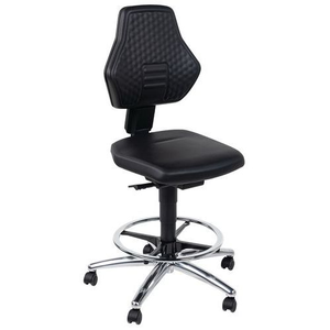 Hoge stoel, Zitting materiaal: Imitatieleer, Rug: ja, Stoel model: Hoog, Voetensteun: ja, Min. zithoogte: 610 mm, Max. zithoogte: 880 mm, Permanent contact: ja, Kleur: Zwart, Zitbreedte: 460 mm, Zitdiepte: 460 mm, Rugbreedte: 430 mm, Rughoogte: 450 mm, Onderstel materiaal: Aluminium, Type voet: Wielen, Max. steungewicht: 120 kg, Synchroontechniek: ja, Instelbare lendensteun: ja, Zitneiginstelling: ja, Gewichtsregeling: ja, Zithoogte verstelling: ja