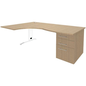 Bureau Asymmetrisch 180 cm metalen L-poot + ladeblok Quatuor, Type onderstel: L-poot, Totale hoogte: 72 cm, Totale breedte: 180 cm, Type bureau: Linker-retourbalie, Type bureaublok: Bureau, Elektrisch systeem: nee, Totale diepte: 120 cm, Tafelblad materiaal: Hardboard, Onderstel kleur: Wit, Tafelblad kleur: Eiken, Geleverd gemonteerd: ja, Rand materiaal: Gemelamineerd, Selectie telewerken: nee, Recyclebare verpakking: Ja - 100%, Gerecyclede verpakkingen: 50 %, Gerecycled product: 65 %, Material des Untergestells: Metaal, Eco-verantwoordelijke aanpak: ja, Model: Retour links dragend ladeblok, Dikte tafelblad: 25 mm, PEFC licentie: 10-31-4128