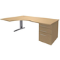 Bureau Asymmetrisch 180 cm metalen L-poot + ladeblok Quatuor, Type onderstel: L-poot, Totale hoogte: 72 cm, Totale breedte: 180 cm, Type bureau: Linker-retourbalie, Type bureaublok: Bureau, Elektrisch systeem: nee, Totale diepte: 120 cm, Tafelblad materiaal: Hardboard, Onderstel kleur: Grijs, Tafelblad kleur: Beuken, Geleverd gemonteerd: ja, Rand materiaal: Gemelamineerd, Selectie telewerken: nee, Recyclebare verpakking: Ja - 100%, Gerecyclede verpakkingen: 50 %, Gerecycled product: 65 %, Material des Untergestells: Metaal, Eco-verantwoordelijke aanpak: ja, Model: Retour links dragend ladeblok, Dikte tafelblad: 25 mm, PEFC licentie: 10-31-4128