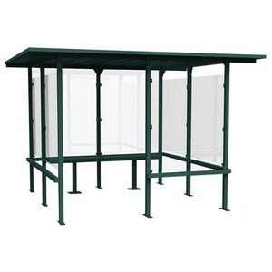 Rokersafdak Beaufortain, Totale hoogte: 1.95 m, Totale breedte: 2.44 m, Totale lengte: 4.05 m, Frame materiaal: Metaal, Totale diepte: 2.44 m, Kleur: Groen, Recyclebare verpakking: Ja - 100%, Recyclebaar product: Ja - 100%, Material der Seitenwände: Gehard glas, Dak materiaal: Gegalvaniseerd staal, Model: Rokersafdak met bankje