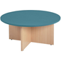 Salontafel Diabolo rond, Type onderstel: Centrale, Breedte: 100 cm, Vorm: Rond, Tafelblad kleur: Blauw, Diepte: 100 cm, Hoogte: 47 cm, Onderstel kleur: Beuken, Randen materiaal: Plaat, Onderstel materiaal: Spaanplaat, Eco-verantwoordelijke aanpak: ja, Dikte tafelblad: 22 mm, PEFC licentie: 10-31-1649, Tafelblad materiaal: Gemelamineerd
