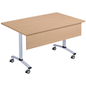 Het plateau is in enkele seconden moeiteloos te draaien en blokkeren om de tafel te verplaatsen en op te bergen. Rechthoekige klapvergadertafel met frontpaneel Axe, met draaiplateau voor optimale ruimtebesparing bij het opbergen. Automatische vergrendeling van de plaat in de werkstand (horizontaal) en verticale Bien veiller à ne pas mixer des plateaux stratifiés et des plateaux mélaminés car épaisseur légèrement différente.