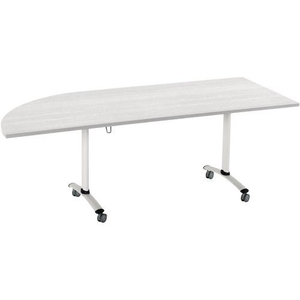 Het plateau is in enkele seconden moeiteloos te draaien en blokkeren om de tafel te verplaatsen en op te bergen. Klapvergadertafel Axe, hoek links, met draaiplateau voor optimale ruimtebesparing bij het opbergen. Automatische vergrendeling van de plaat in de werkstand (horizontaal) en verticale positie (opslag). Bien veiller à ne pas mixer des plateaux stratifiés et des plateaux mélaminés car épaisseur légèrement différente.