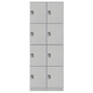 Kunststof garderobekast meervaks Twinco, Type garderobekast: Met vakken, Materiaal: Polystyreen, Aantal vakken/kolom: 4, Aantal kastkolommen: 2, Onderstel: Op sokkel, Breedte kolom: 380 mm, Aantal deuren: 8, Type sluiting: Met sleutel, Hoogte: 1344 mm, Breedte: 760 mm, Diepte: 500 mm, Nuttige hoogte vak: 316 mm, Nuttige breedte vak: 380 mm, Nuttige diepte vak: 500 mm, Kleur ombouw: Grijs, Kleur deur: Grijs, Geleverd gemonteerd: nee, Montage: Zelfbouw, Min. gebruikstemperatuur: -40 °C, Hoogte sokkel: 80 mm
